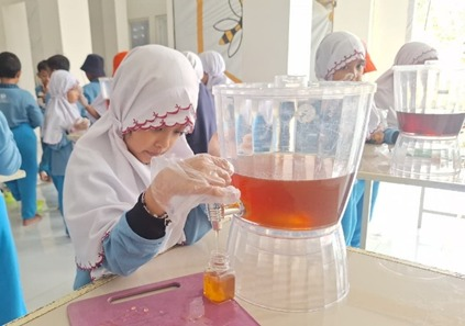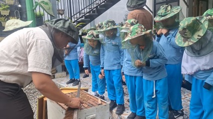 Salah satu sesi yang paling dinantikan adalah pengalaman mencicipi enam rasa madu yang berbeda. Para siswa diajak mengenali karakteristik unik dari setiap jenis madu yang dihasilkan dari berbagai nektar bunga. Pengalaman sensorik ini memberikan pemahaman praktis bahwa kekayaan flora di Indonesia menghasilkan produk perlebahan yang beragam, baik dari segi warna, aroma, maupun khasiatnya bagi kesehatan.