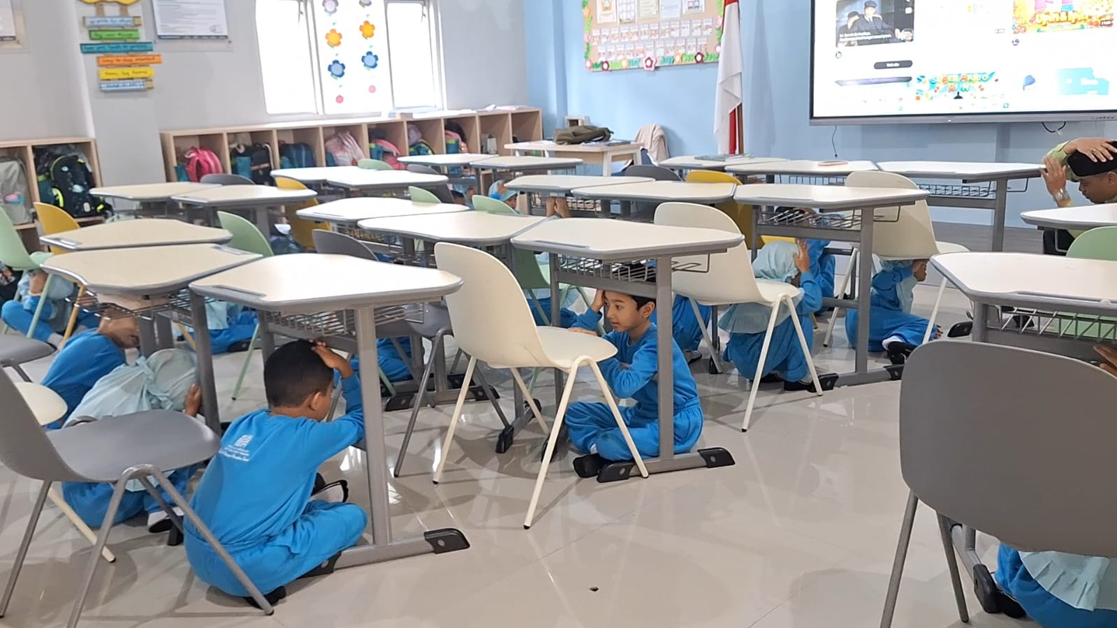 Simulasi dimulai dengan pemberian materi edukasi mengenai jenis-jenis bencana dan prosedur keselamatan dasar. Para siswa diajarkan langkah-langkah penyelamatan diri, seperti berlindung di bawah meja yang kokoh saat terjadi gempa bumi dan teknik menutupi kepala untuk menghindari benturan. Fokus utama dari pelatihan ini adalah menanamkan sikap tenang dan tidak panik, sehingga setiap individu dapat mengambil keputusan yang tepat di tengah situasi kritis.