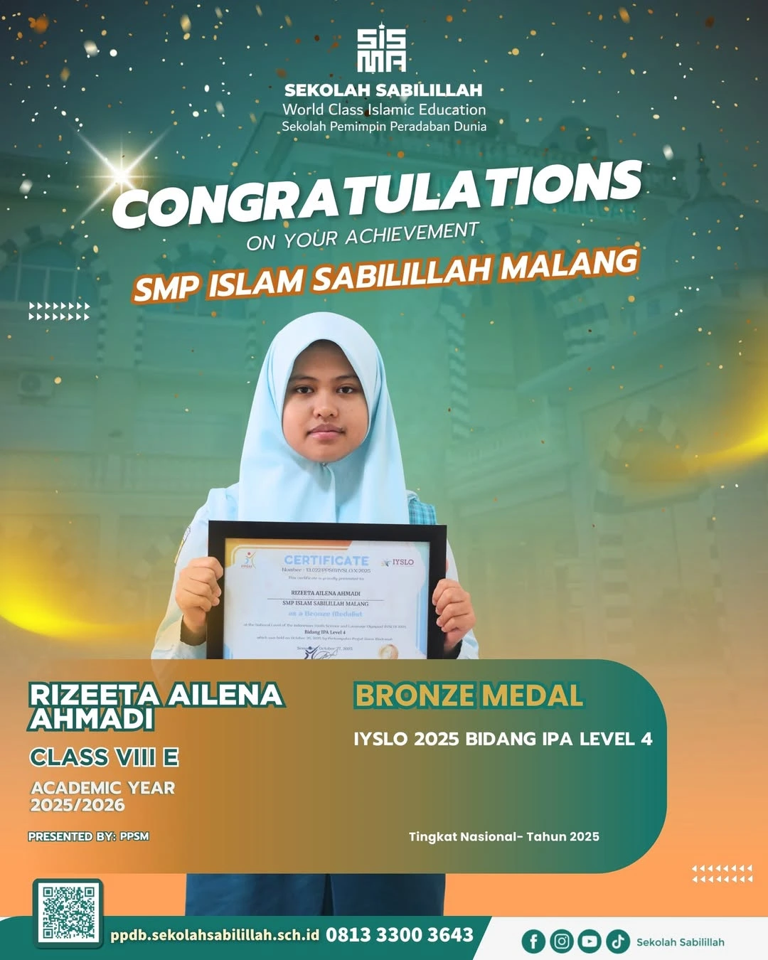- Medali Perunggu Lomba Integrated Islamic Science Competition (IISC) 2023 tingkat Nasional