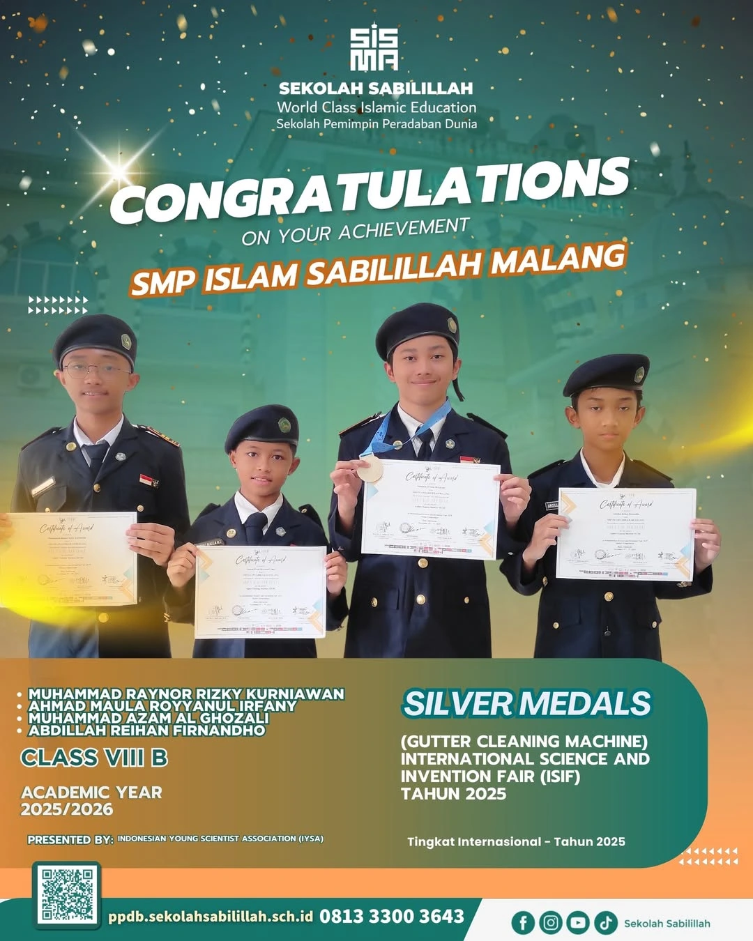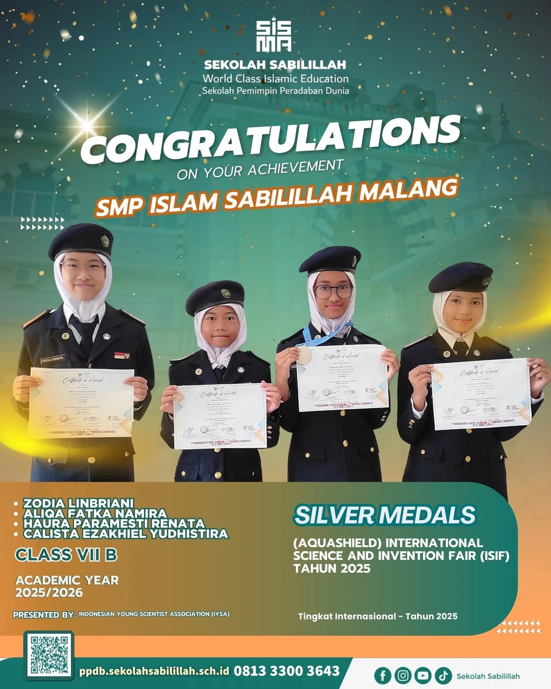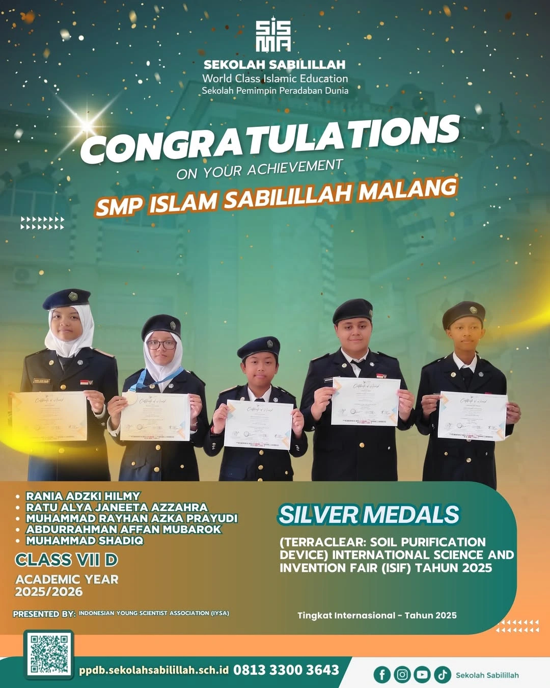 - Silver Medal Youth International Science Fair (YISF) tingkat Internasional