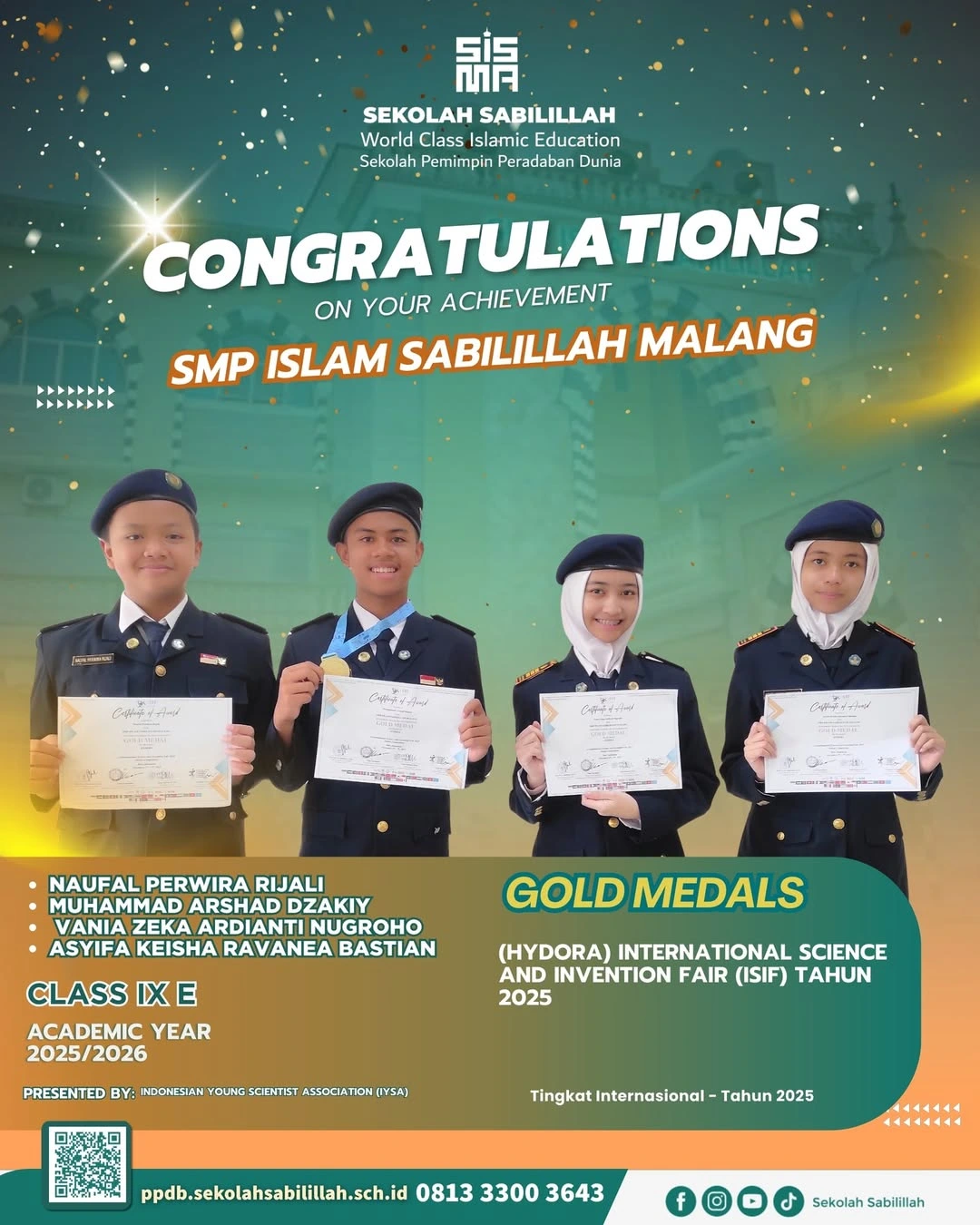 - Medali Emas Lomba Integrated Islamic Science Competition (IISC) 2023 tingkat Nasional
